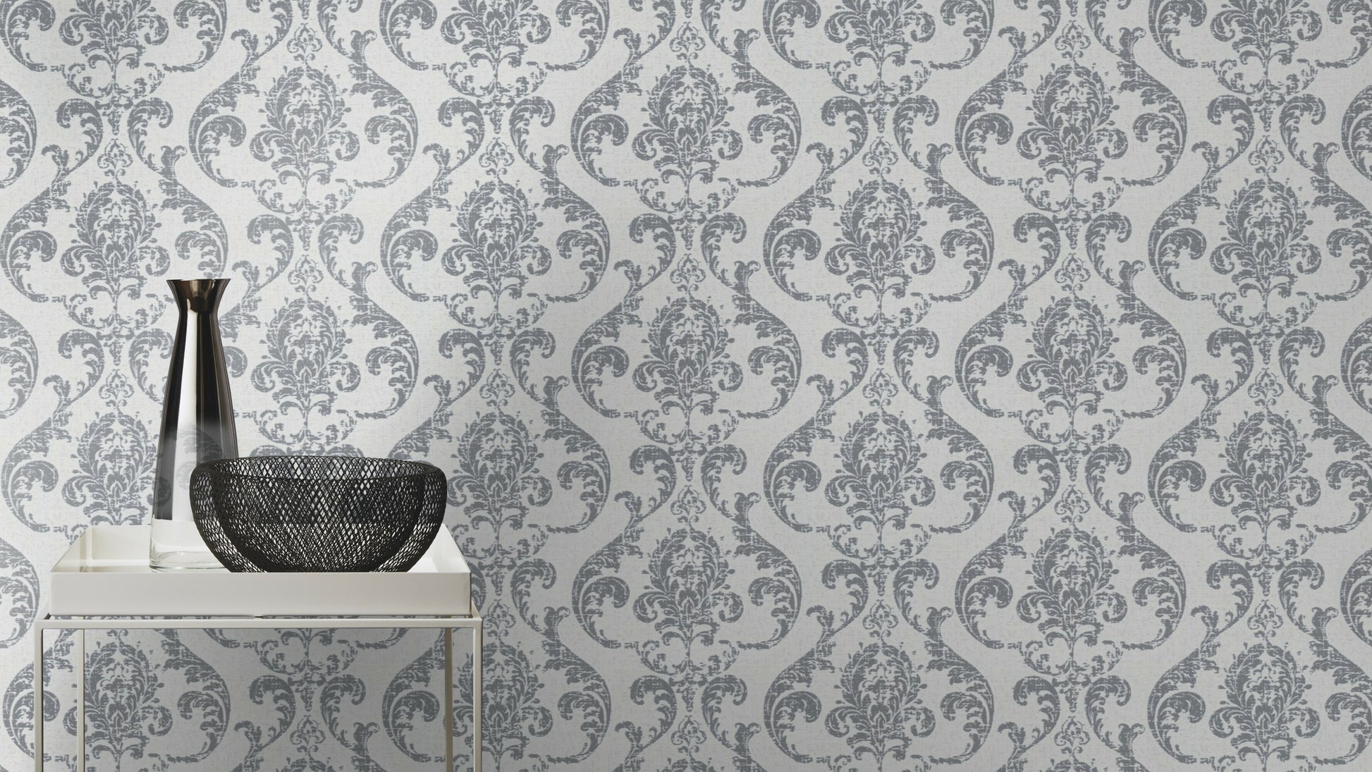 Baroque Damask Grey-Silver