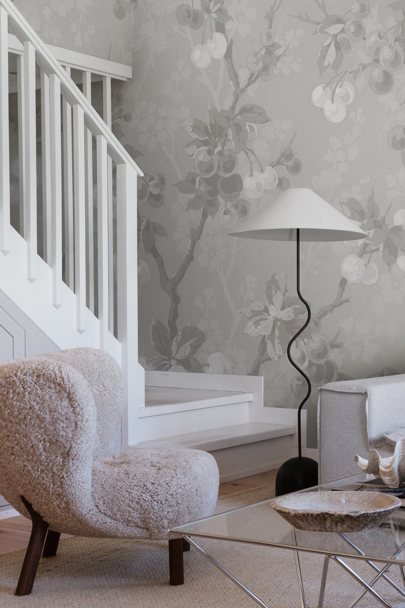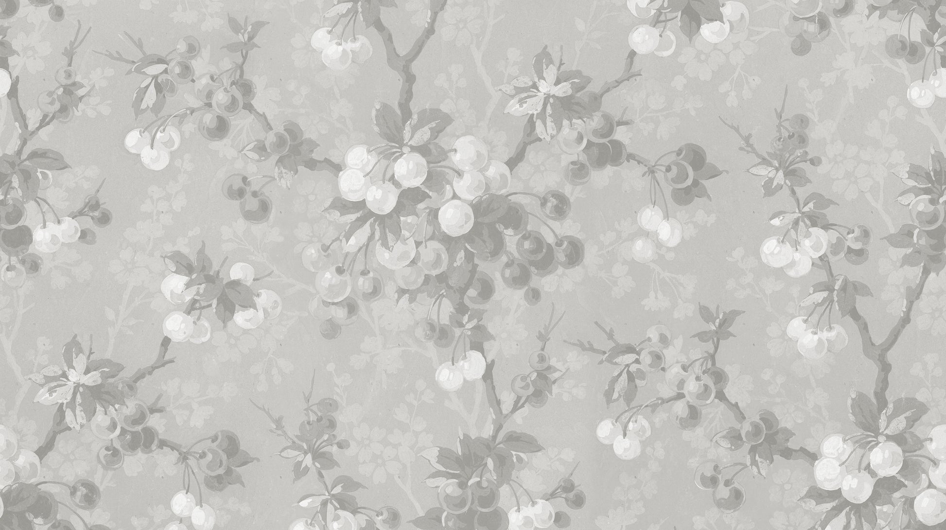 A botanical fairy-tale world comes to life in this wallpaper filled with enlarged cherries that spark your fantasy and make your whole room smile.