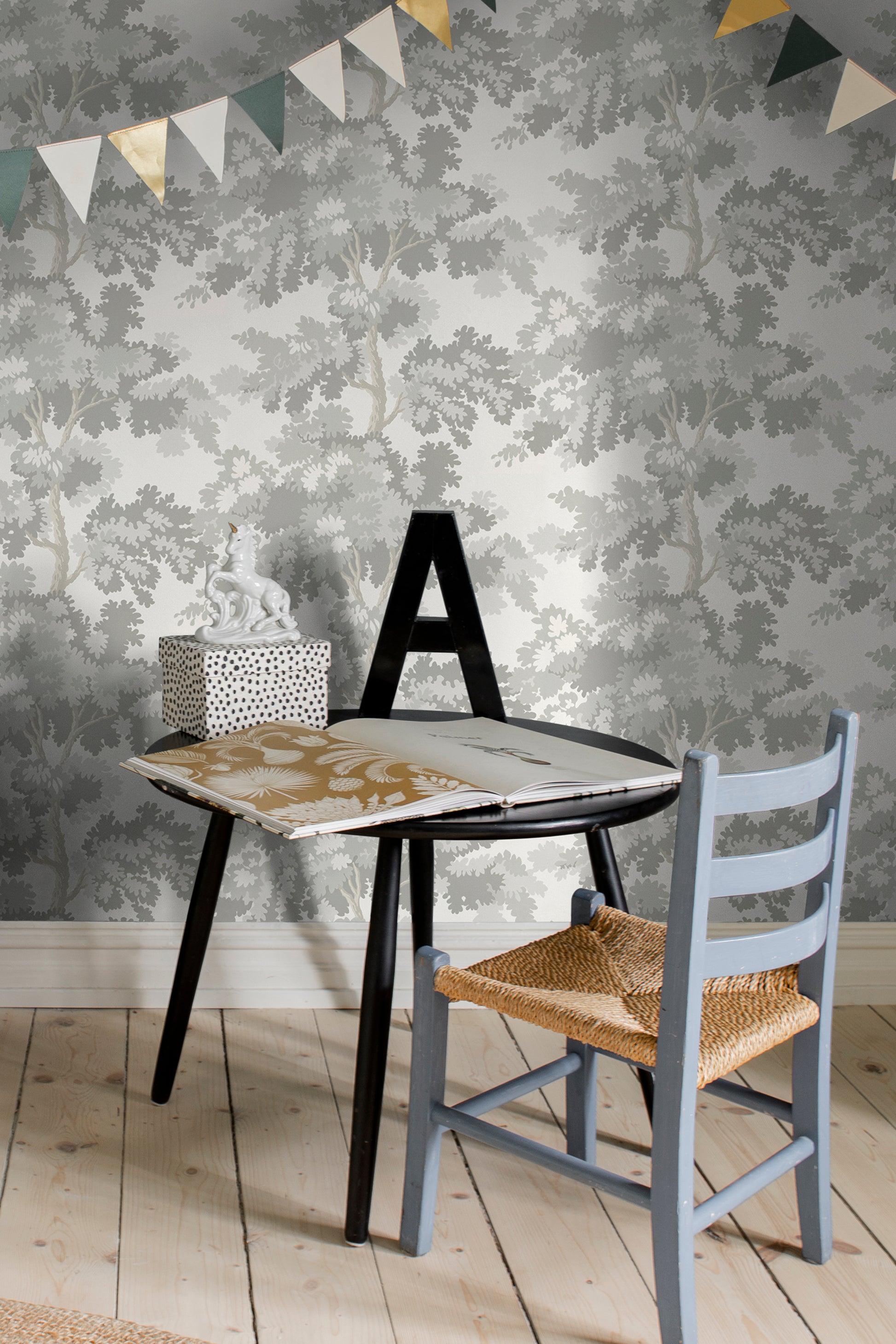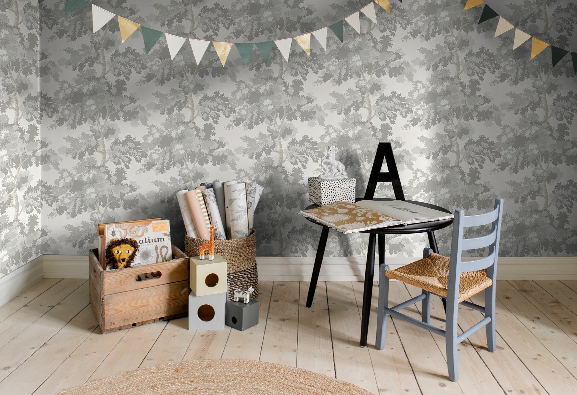 The new expression of our beloved wallpaper Raphaël takes us to a misty morning’s quiet stroll through the park. Inspired by an antique woven tapestry showing a beautifully lush landscape.